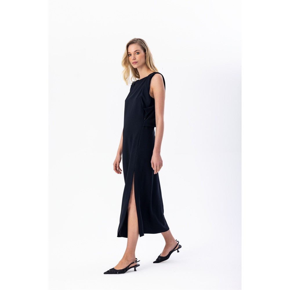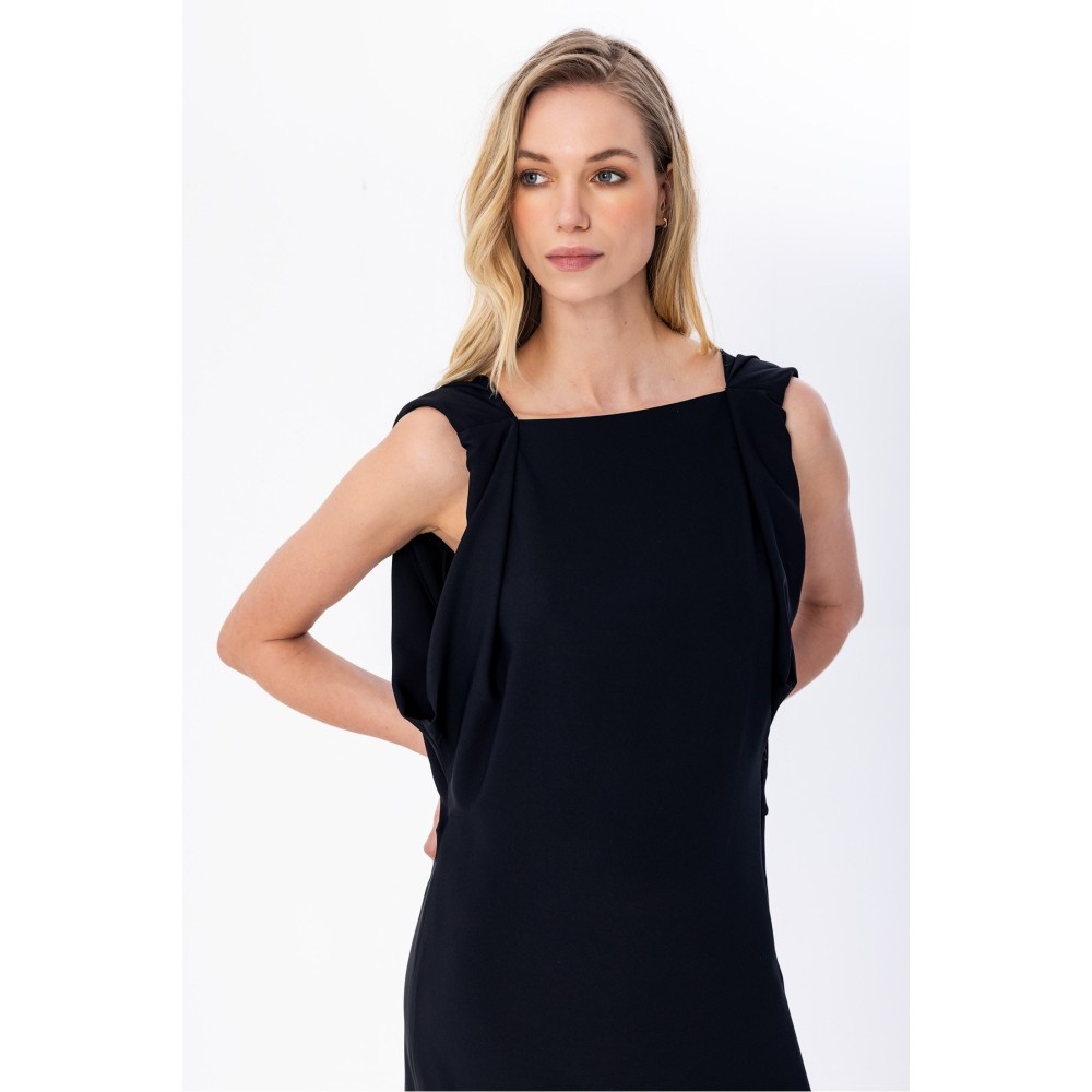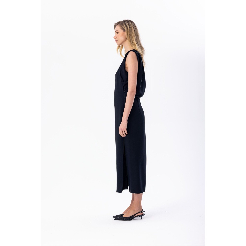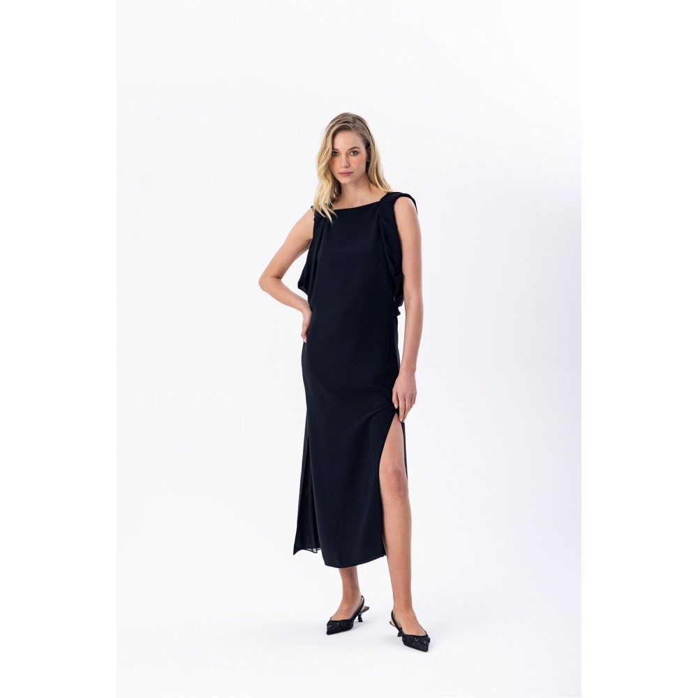 Arkası Kruvaze Midi Elbise Siyah